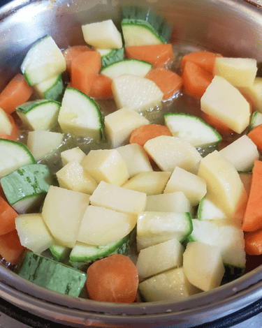 Adicionar Batata/Abobrinha: + 3-4 minutos (até a batata mudar de cor)