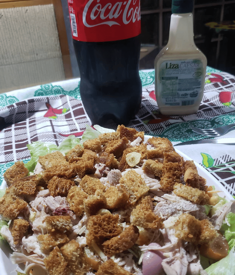 2 colheres de sopa de molho caesar coloque a gosto, mas sem exageros para não afogar a salada.