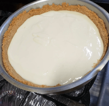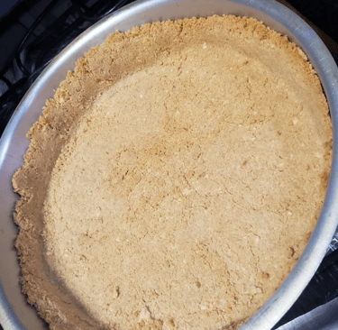 Misture: Misture a farinha de biscoito com a manteiga derretida até obter uma farofa mais grossa e úmida.
