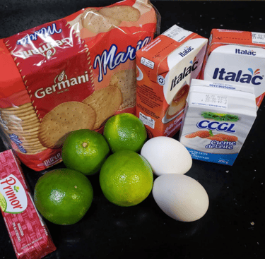 Em uma tigela, coloque o leite condensado, o suco de limão e o creme de leite.