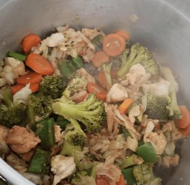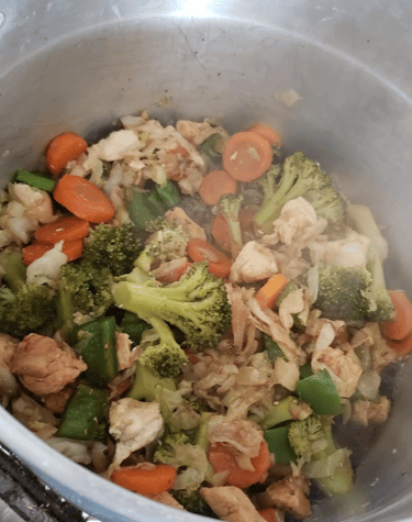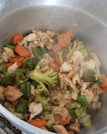 Em seguida, acrescente o restante dos legumes e da proteína.